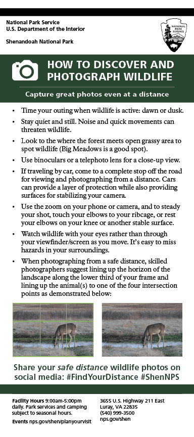 Download customizable files designed for print. We have posters/signs of various sizes and a rack card. Swap in your distance regulations or guidelines and wildlife. They can be edited in Adobe InDesign CC. You can thank us by simply letting us know how you use these!